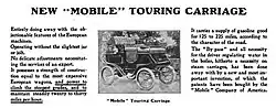 The Automobile Races held at Newport, Rhode Island in September 1900 featured a steam vehicle race won by Joseph H. McDuffee driving the Mobile. Earlier in 1900, Brisben Walker with his wife, drove a Mobile steam carriage up Pikes Peak to the timberline or approximately 10,000 feet.[4][3]