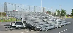 A mobile bleacher or portable bleacher is a type of bleacher that can be moved to different locations to fulfill a need for temporary or reconfigurable seating. Some units incorporate a built-in hydraulic or electric actuation system for raising and lowering the unit. Highway towable units are available, as well as units designed to be moved within a single venue.[1]