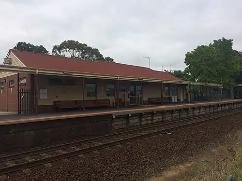 ![]() Southbound view of the station building, January 2017 | |||||||||||||||||||||||