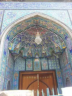 Built in an Iranian Qajar style, the exterior is embellished with coloured tiles. The carpets and chandeliers in the mosque interior were imported from Iran. Verses from the Quran are inscribed on the walls.[3] In the 1990s, the mosque was restored by Reza Kabul.[4][3]