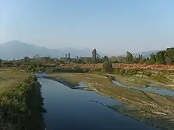 Tributaries of the Moglenitsas include the Xiropotamos, Toplitsas, Koziakas and Golemas rivers. As the only outflow from the region of Almopia it flows between low hills to the south, where it forms a small canyon. In the 1930s the river was redirected by use of a canal and today irrigates the region of Almopia.[2][3]The river is used for sports such as rafting and kayaking and for irrigation.[4][5]