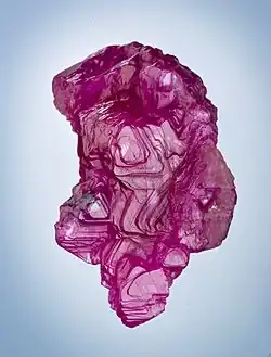 Mogok and other villages nearby, especially Kyatpyin have been famous since ancient times for its gemstones, especially ruby and sapphire, but semi-precious stones such as spinel, lapis lazuli, garnet, moonstone, peridot and chrysoberyl are also found. The gems are found in alluvial marble gravels by means of panning, tunneling and digging pits by hand. There is little mechanization of the mining. The gravels derive from the metamorphosed limestones (marbles) of the Mogok metamorphic belt.[12][13]