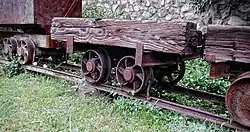 In the 1870s, Sergeant James C. Cooney of Fort Bayard found a rich strand of gold in the Gila Mountains near the future site of Mogollon.[5] A miner named John Eberle built the first cabin in Mogollon in 1889, after mines were developed in Silver Creek, which runs through the town. A jail and post office opened in 1890, and the first school was added in 1892.[6] During this period of growth, Mogollon absorbed the population of nearby Cooney, and helped towns like Glenwood, Gila and Cliff grow because of their locations along the trail to the town. Between 1872 and 1873 the stagecoach from Mogollon to Silver City was robbed 23 times by the same assailant. He was eventually apprehended by agents of the Wells Fargo.[7]