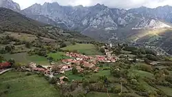 - ordinary houses of the Lebaniego type, with the upper floor frequently open to the exterior, interlaced walls of poles, lined with a clay mantel which delimits a space used as haystack; in some of them, the second floor can be accessed with skates, an Asturian influence. Other types of popular buildings are several semicircular bread ovens and a barn.[3]