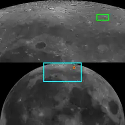 By convention these features are identified on lunar maps by placing the letter on the side of the crater midpoint that is closest to Moigno.