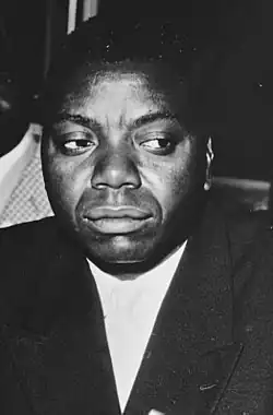 A member of the Lunda ethnic group, Tshombe was born near Musumba, Belgian Congo, the son of a successful businessman. The Tshombe family were Lunda royalty and a number of Tshombes had reigned as the Mwaant Yav, the traditional king of the Lunda people.[1] He received his education from an American missionary school and later trained as an accountant. In the 1950s, he took over a chain of stores in Katanga Province, which failed. Tshombe ran a number of businesses, which all failed, requiring his wealthy family to bail him out. Tshombe later became involved in politics.[2]