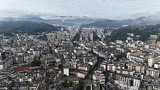 Cityscape of county town Tropic of Cancer Tower Mojiang Confucian Temple The Sun Square Puyi Park | |