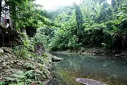 The Molawin River, also referred to as the Molawin Creek, is one of the many low volume flowing rocky streams crisscrossing the campus of the University of the Philippines Los Baños and some areas of the town of Los Baños. Molawin Creek crosses the whole of the UPLB campus and essentially cuts it in half making it necessary to construct several bridges throughout the university's history to improve the campus' integrity and general accessibility.[1] Volume of flow depends on the average rainfall of the season and develops into a raging river during typhoons or heavy rainfall. It is a minor tributary of Laguna Lake, one among many small creeks that empty into Laguna de Bay. The origins of Molawin Creek and the other creeks in Los Baños have not been pinpointed but are generally accepted to have their origins high up in Mount Makiling.[2] The name Molawin is a local variation of the name of the Molave tree (Vitex parviflora).