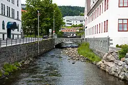 Molde River (English) or Moldeelva (Norwegian)[1] is a river in Molde Municipality in Møre og Romsdal county, Norway.[2] The 5-kilometre (3.1 mi) long river runs through the Moldemarka area and then through the city of Molde. Its origins are found at Lake Molde (Norwegian: Moldevatnet). It follows the Molde Valley (Norwegian: Moldedalen) on its way to the Molde Fjord (Norwegian: Moldefjord). The approximately 5-kilometre (3.1 mi) river is crossed by several bridges.
