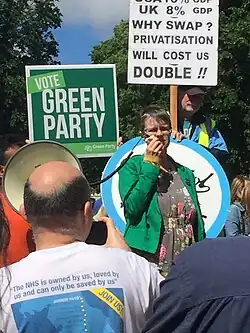 Scott Cato stood as the Green Party candidate for the Preseli Pembrokeshire constituency at the 1997 and 2005 general elections, coming sixth.[14] For 2017, Scott Cato was selected by the party to stand for the constituency which saw its greatest-swing result in 2015, Bristol West, where the party had been placed second – a seat with a high student and academic contingent to its electorate.[15] She was endorsed by Hugh Fearnley-Whittingstall.[16] She finished in third place in the 2017 election, with the Green share of the vote dropping from 26.8% to 12.9%.
