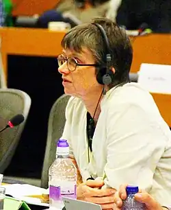 Sarah Margaret "Molly" Scott Cato (born 21 May 1963) is a British Green politician, economist and activist. She served as a Member of the European Parliament (MEP) for South West England[a] from 2014 to 2020. From 2012, until her election as an MEP, she was Professor of Strategy and Sustainability at the University of Roehampton.[3] Scott Cato speaks for the Green Party on finance[2] and the EU,[4] and is known for her work in the field of co-operative studies.[5] She has published on green economics, localism and anti-capitalism, and has contributed to works on the risks of nuclear power, the use of which she strongly opposes.