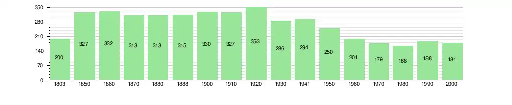 As of 2000, there were 71 private households in the village, and an average of 2.5 persons per household.[9] There were 18 households that consist of only one person and 6 households with five or more people. Out of a total of 71 households that answered this question, 25.4% were households made up of just one person and there were 2 adults who lived with their parents. Of the rest of the households, there are 20 married couples without children, 26 married couples with children There were 4 single parents with a child or children. There was 1 household that was made up of unrelated people.[10]