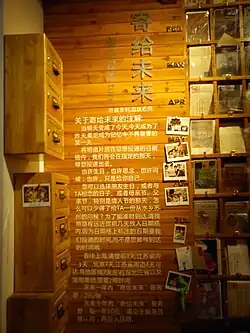 Another notable aspect of the cafe is the wall called "Mail to Future". There are 365 slots on this wall, and each slot corresponds with one day in a year. Patrons can choose a postcard, write down the receiver’s name and address, and put it into any slot and the postcard will be sent on that day. The wall is a treasure of the market town and it is also known as the only one around China. Additionally, all of the postcards are designed by the shopkeepers. With the help of many friends, there are almost 300 different kinds of postcards that have come out and most of them are related to Suzhou.