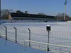 The Mommsenstadion is a multi-purpose stadium in the locality of Westend in Berlin, Germany, named after the historian Theodor Mommsen. It is currently used mostly for football and hosts the home matches of Tennis Borussia Berlin and SCC Berlin. The stadium has a capacity of 15,005 people (13,200 standing), although the DFB has set an upper limit of 11,500 supporters for football games.[1]