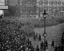 From the beginning of the First World War, women in Scotland typically worked in the nursing or munitions industries, occasionally running field hospitals and soup canteens or driving ambulances with the First Aid Nursing Yeomanry, which was established in 1907.[10] By 1916, Chalmers Watson advocated for the creation of a corps of women volunteers who could undertake additional ancillary, non-combatant duties. At this time, Chalmers Watson's brother, Brigadier-General Sir Auckland Geddes, was the Director of Recruiting at the War Office, and he arranged for Chalmers Watson to meet with Sir Nevil Macready, the adjutant-general, on 26 January 1917[3] to set out her proposal for the formation of the corps.[1] On 7 July 1917, the Women's Army Auxiliary Corps (WAAC) was formally instituted; Macready had requested that Chalmers Watson be its first Chief Controller and senior officer some months earlier, in February 1917.[1][10] She was appointed at a rank equivalent of a brigadier-general and paid an annual salary of £500.[3] The organisation headquarters was Devonshire House, Piccadilly, London. She issued a recruiting pamphlet calling on 'every strong healthy and active woman not employed on work of national importance' to volunteer.[3] Selecting as her deputy Helen Gwynne-Vaughan, Chalmers Watson raised a corps of 40,850 women, of whom some 17,000 served overseas (although never more than 8,777 at a time).[10]