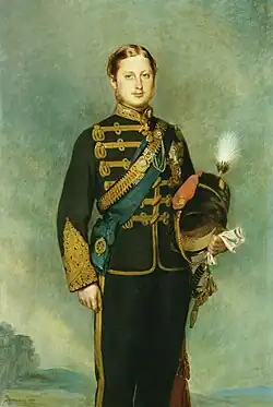 Prince Albert Edward (the future King Edward VII), the eldest son of, and heir to, Queen Victoria, landed at Charlottetown, on 10 August 1860, where he was welcomed by George Dundas, the colony's Lieutenant Governor, and proceeded to Government House. There, the Prince held audience with the Executive Council and, later, attended a formal ball and levee. Albert Edward toured the countryside and visited Province House, where he received an addresses from the Executive Council. Upon his departure, the Prince left £150 with the Governor for charitable use.[31]