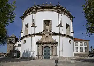 Construction of the first monastery at the site began in 1538 by the Order of St. Augustine.[2] The initiative dates back to 1527 under the orders of João III to serve as a larger monastic residence for monks from the Monastery of Grijó, in Grijó, which had been in a state of deterioration.[3] The original monastery was completed in 1564 and the cloisters were finished in 1583. The first monastery was quickly rendered obsolete as the facilities were too small for the number of monks in residence. In 1597, work began on the new church and the monastery was slowly updated in phases over the next several decades. The new circular church was inaugurated on July 17, 1672, and the final phases of the monastery were completed by the end of the 17th century.[3]