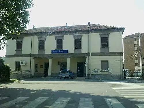Moncalieri Sangone railway station (Italian: Stazione di Moncalieri Sangone) serves the town and comune of Moncalieri, in the Piedmont region of northwestern Italy.[1] The station is a through station of the Turin-Pinerolo-Torre Pellice railway.