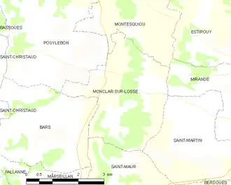 Monclar-sur-Losse (French pronunciation: [mɔ̃klaʁ syʁ lɔs], literally Monclar on the Osse; Occitan: Montclar sus l'Òssa) is a commune in the Gers department in southwestern France.