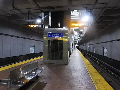 In the summer of 2021, the MTA confirmed a contract for the replacement and removal of two elevators at Mondawmin station, which provide access to the mezzanine level from the street level and connect the platform to the mezzanine level respectively. The extensive overhaul of the elevators and elevator enclosures at the station follows a determination that currently installed equipment has outlived its useful life, and is expected to take 20 months, from January 2022 to August 2023.[6][7]