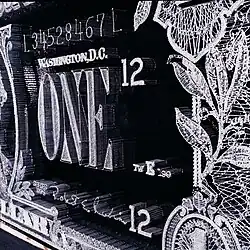 Other media they have used for portraits include cotton thread for a series including Rodolfo Enrique Fogwill,[4] pearls for María Amalia Lacroze de Fortabat, matches for the gallery owner Ruth Benzacar,[9] dried meat for Lucian Freud,[4] burnt toast, stale bread and resin for Eva Perón, gold chains wrapped around nails for Diego Maradona and bullets and red resin for Che Guevara. Non-portrait subjects include a U.S. dollar note created with 80,000 nails, silver thread and resin on black wood,[11] a lotus flower rendered in 300,000 hand-painted Chinese sticks and a depiction of childbirth as a mosaic of glass squares.[2] They frequently use edibles, such as smoked ham, salmon and cheese, freeze-dried and sealed in resin.[2] For the Black Series, they transformed pornographic images from the internet into mosaics of cookies and crackers in shades of brown and black;[2][7] the monochromy and the use of common foodstuffs are a commentary on the de-eroticisation of sex and its pervasive commodification.[8] In 2012 they showed a triptych reminiscent of Catholic altarpieces, but depicting a favela.[5]