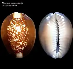 Monetaria caputserpentis, common name the serpent's-head cowry or snakehead cowry, is a species of cowry, a sea snail, a marine gastropod mollusk in the family Cypraeidae, the cowries.[1]