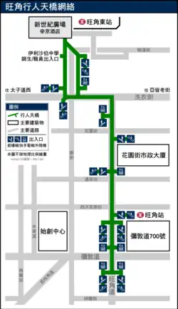 - ^ "歷時23年「蝸牛工程」 旺角道天橋跨彌敦道段終完工 周四5pm正式啟用". 香港01. September 30, 2021.