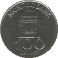 [12] | 100 tögrög | 22 mm | 1.5 mm | 3.84 g | Cupronickel | Value, Janraisig Temple | |||