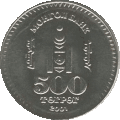 [14] | 500 tögrög | 22 mm | 1.7 mm | 4.1 g | Smooth | Value, Soyombo | Damdin Sükhbaatar | 2001 | |