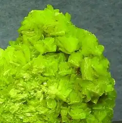 (IUPAC: trialuminium uranyl dihydro triphosphate tridecahydrate) - Morelandite (apatite: IMA1977-035) 8.BN.05 [1,063] [1,064] [1,065]