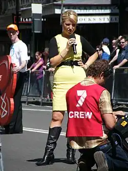 ![]() Monique Wright reporting on the 2008 Olympic parade | |