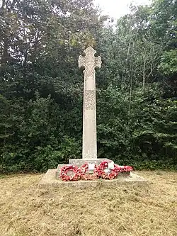 The Monken Hadley War Memorial is located immediately to the north of Monken Hadley at the western end of Camlet Way in Monken Hadley Common. It commemorates the men of the district who died in the First and Second World Wars and is in the form of a tapered decorated column with a celtic cross at the top and the names of the dead shown on the shaft.[1] It was unveiled by Francis Fremantle, Member of Parliament for St Albans, in December 1920. It became a Grade II listed building in April 2017.[2]