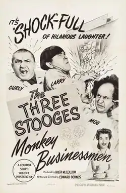Monkey Businessmen is a 1946 short subject directed by Edward Bernds starring American slapstick comedy team The Three Stooges (Moe Howard, Larry Fine and Curly Howard). It is the 92nd entry in the series released by Columbia Pictures starring the comedians, who released 190 shorts for the studio between 1934 and 1959.