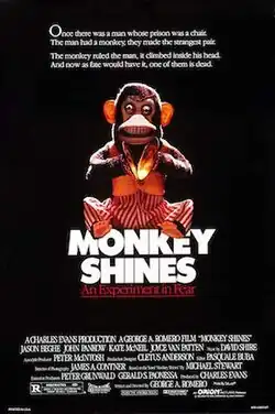 Monkey Shines (also known as Monkey Shines: An Experiment in Fear) is a 1988 American science fiction psychological horror film written and directed by George A. Romero and starring Jason Beghe, Kate McNeil, John Pankow, and Joyce Van Patten. Its plot follows a young athlete who becomes a paralyzed quadriplegic, and develops a bond with an intelligent service monkey named "Ella" who becomes homicidal after she is injected with an experimental serum of human brain tissue. It is based on the 1983 British novel of the same title by Michael Stewart.