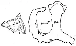 - M. fissus was also named by Cope in 1889, and based on a bone (AMNH 3988) which he thought was a squamosal that differed from the other species in the size of the attachment areas with the surrounding parts of the skull.[23] The supposed squamosal bone was actually a pterygoid.[7]