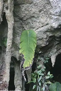| Monophyllaea pendula (One-leaf plant) in a cave in Sarawak province on Borneo, Malaysia | |