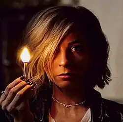 Hanna subsequently steps back, revealing a bloody wound on her chest which permeated through her white shirt, and the camera cuts back to the girl, who has now transformed into a monster. Hanna runs away and spreads gasoline around the house to set it on fire. Interspersed shots show her in a room, singing to the lyrics, as well as either destroying or lighting up objects in the house. During the video's second part, Hanna sits alone in a burned shell of the house. Crying, she douses herself in gasoline and strikes a match. The video subsequently cuts to black as a woosh sound is heard, hinting at her suicide.[4] In April 2021, Hanna accused American singer Bebe Rexha's music video for "Sabotage" (2021) of plagiarism, showing side-by-side frames of the latter and her "Monster" clip via her Twitter account. Rexha responded, however citing Eminem and Rihanna's "Love the Way You Lie" (2010) as an inspiration rather than "Monster".[10]