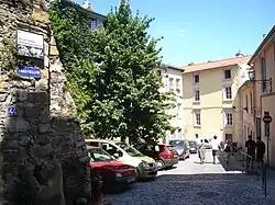 The Montée du Gourguillon is an old street in the 5th arrondissement of Lyon, France, on the hill of Fourvière, between the Saint-Jean and Saint-Just quarters.[1] Montée translates in English to the nouns "climb" or "rise "[2] and is given to a number of steep streets. The ancient Roman settlement of Lugdunum was established here in 43 BC. The Montée du Gourguillon begins at the Place de la Trinité and ascends to the Rue des Farges. Fourvière is known as "the hill that prays" because the Basilica of Notre-Dame de Fourvière, several convents, and the Archbishop's residence are located there. The street belongs to a zone classified by UNESCO as a World Heritage Site.