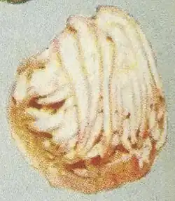- ^ a b Hasebe, 新三 (Shinzō ?) (February 1956). 原色版解説 [Description of color pages]. 製菓製パン [The journal of baking and confection] (in Japanese). 22 (2). Tokyo: Seika Jikken Publication (製菓実験社). Color pages (unnumbered), p126. ndldm:3321412.