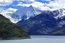 Mont Blanc de Cheilon (also spelled Mont Blanc de Seilon) is a mountain of the Pennine Alps, located in the Swiss canton of Valais. The mountain lies between the valleys of Bagnes and Arolla. Culminating at 3,870 metres above sea level, it is one of the highest summits between the Grand Combin to the west and the Dent Blanche to the east. The massif is glaciated, with the Cheilon Glacier to the north, the Giétro Glacier to the west, the Brenay Glacier to the south and the Tsijiore Nouve Glacier to the east.
