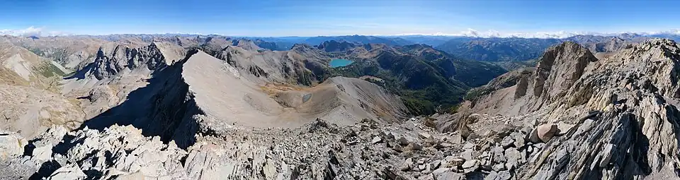 Mont Pelat (3,050m), is a mountain of the Maritime Alps located in the chain of mountains between the high valley of Verdon to the west, the high valley of Var to the east and the Bachelard valley in the North. Located in the department of Alpes-de-Haute-Provence, it is the namesake of the Pelat Massif. The summit is located in the central area of the Mercantour National Park. It is known as being one of the easiest of the 3,000m Alpine peaks to climb. It overlooks the magnificent glacial Allos Lake, the largest mountain lake in Europe, which is 2,227 m (7,306 ft) above sea level.