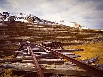 A flurry of quartz mining activity took place on Montana Mountain starting in 1899, peaking in 1905-1906 when American mining promoter John Conrad consolidated claims on Montana Mountain and built three tramways to carry the ore back down, including a 4-mile-long one from Windy Arm on Tagish Lake to the Mountain Hero mine.[3][4]