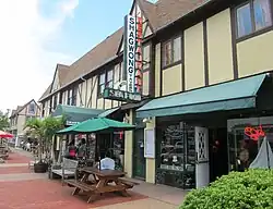 In 1926, Carl G. Fisher bought most of the East End of Long Island (10,000 acres (40 km2)) for $2.5 million. He planned to turn Montauk into the "Miami Beach of the North", a "Tudor village by the sea".[27] His projects included blasting a hole through the freshwater Lake Montauk to access Block Island Sound to replace the shallow Fort Pond Bay as the hamlet's port; establishing the Montauk Yacht Club and the Montauk Downs Golf Course; and building Montauk Manor, a luxury resort hotel; the Montauk Tennis Auditorium, which became a movie theater (and is now the Montauk Playhouse); and the six-story Carl Fisher Office Building (later the Montauk Improvement Building and now The Tower at Montauk, a residential condominium). This last building remains East Hampton's tallest occupied building, as zoning ordinances restricted heights of later buildings. The 30 or so buildings Fisher put up between 1926 and 1932 were designed in the Tudor Revival style.[27] Fisher had successfully developed Miami Beach before beginning his Montauk project, but although he continued to pour his money into the development, to the extent of $12 million in total, he eventually lost his fortune due to the Wall Street Crash of 1929, and most of his enterprises were shut down. Other hotels that opened at the time of Fisher's project include Gurney's Inn, built by W. J. and Maude Gurney, who had managed a Fisher hotel in Miami Beach.