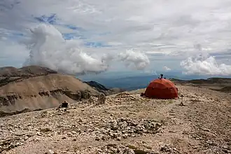 ![]() Summit of Mount Amaro, highest peak of Maiella, with the red bivouac Cesare Mario Pelino | |