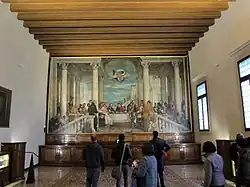 - The main altarpiece depicts an "Allegory of the people of Vicenza present the church of Monte Berico to the Virgin" by Giulio Carpioni.