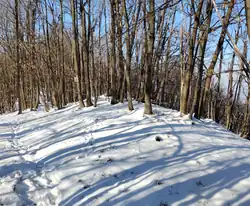 The summit of Mount Cavanero can be easily reached on foot, in about an hour's walk, passing near Mirabello Castle. The start of the hike can be made after parking the car beside the road that connects the center of Chiusa with the Mortè hill.[10]