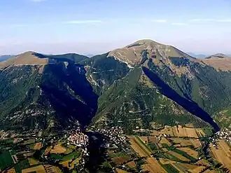 Mount Cucco (1,566 m a.s.l.[1]) is a mountain located in Umbria, along the Umbrian-Marche Apennines, in the area of Gubbio, included in the territory of the municipalities of Costacciaro, Scheggia e Pascelupo, Fossato di Vico and Sigillo. Since 1995 it has become a protected area under the name of Monte Cucco Park.