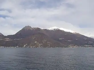 Monte di Tremezzo is a mountain of the Lugano Prealps in Lombardy, Italy. It is the highest summit of a ridge just south of Porlezza commune, lying between Lake Lugano and Lake Como. Due to its modest height (by alpine standards) it is a relatively easy mountain to climb, but due to its great prominence it provides a good view across the lakes, and over to the High Alps; mountains as far away as Finsteraarhorn, Dom and Monte Leone can be seen on a clear day.[2]