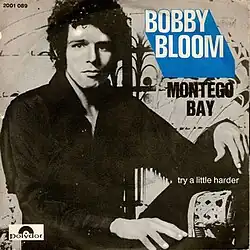 "Montego Bay" is a song co-written and performed by Bobby Bloom about the city in Jamaica of the same name. The song was a top ten hit for Bloom in the Fall of 1970 on both sides of the Atlantic. It reached No. 3 on the UK Singles Chart,[2] No. 5 on the Canadian RPM 100 Singles Chart,[3] No. 7 on the Australian Go-Set Singles Chart and No. 8 on the US Billboard Hot 100. The song was co-written and produced by Jeff Barry. In the master tape of the song, Bloom breaks into a chorus of "Oh, What a Beautiful Mornin'" at the end of the recording. The song features a whistler, as well as Jamaican instruments in a calypso style.