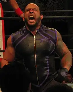 Assad entered the professional wrestling business through the help of a corrections officer in his prison who also worked as a wrestler in the independent circuit.[14] After being trained by former professional wrestlers Soulman Alex G and Norman Smiley, Assad made his wrestling debut in 2002.[4][7] He worked for many different companies on the independent circuit using the name Antonio Banks, including appearances with Full Impact Pro (FIP) and Future of Wrestling (FOW), where he won the latter's Tag Team Championship with Punisher.[5][7][15][16] During his time in FIP, he wrestled Homicide for the World Heavyweight Championship at the Ring of Honor show Do or Die IV on February 19, 2005, but did not win the title.[5][17] He also made sporadic appearances for Total Nonstop Action Wrestling (TNA), and wrestled on the April 20, 2003, episode of TNA Xplosion.[5][18] He appeared again for TNA on the August 6, 2004, episode of Impact!, with Sal Rinauro as his tag team partner, losing to America's Most Wanted.[5][19] He also wrestled for Coastal Championship Wrestling (CCW) and Elite Wrestling Entertainment in 2005, competing against wrestlers like Jerry Lynn and D'Lo Brown.[5] In CCW, he won the Heavyweight Championship on August 20, 2005, by defeating Blackhart and Bruno Sassi in a three-way match.[20]
